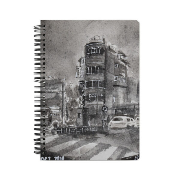 The Hotel Tushar Building Notebook pays tribute to a striking yellow landmark at the chaotic crossroads of Pune’s Alka Talkies Chowk, where six busy roads merge into the city’s pulse.