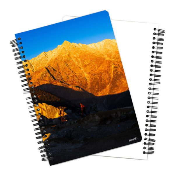 ₹449.00Original price was: ₹449.00.₹379.00Current price is: ₹379.00.Jot thoughts in an A5 notebook featuring the Last Light on the Dhauladhars. 150 unruled pages, wiro-bound.