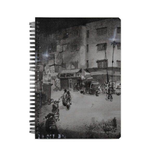 The Panganti Chowk Notebook features a hand-drawn Pune street scene from Guruwar Peth by Vijaykumar Kakade. A perfect sketchbook, journal, or collectible from the city’s old quarters.